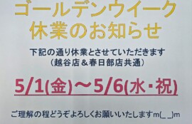 GW休業のお知らせ(越谷店&春日部店共通)